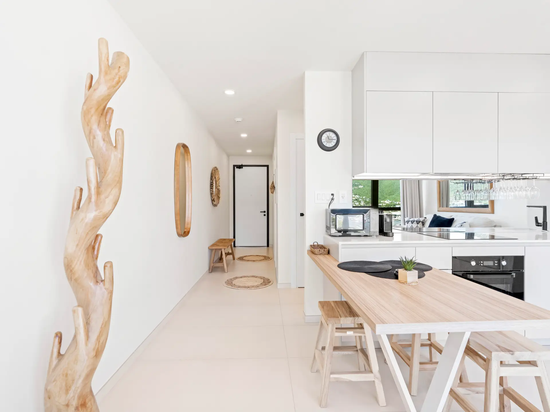 Nous sommes ravis de vous présenter notre superbe appartement d’une chambre situé au premier étage de The Hills Residence. Avec ses 55 m² d’espace sophistiqué et son mur de verre offrant une vue imprenable sur la lagune, cet appartement est véritablement un trésor.