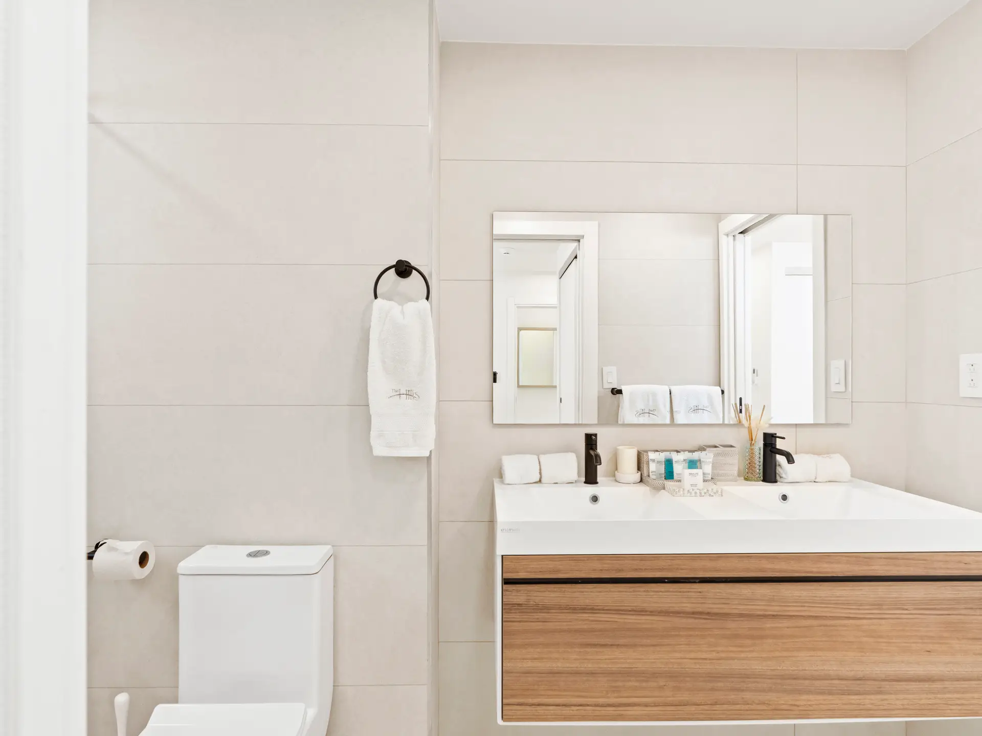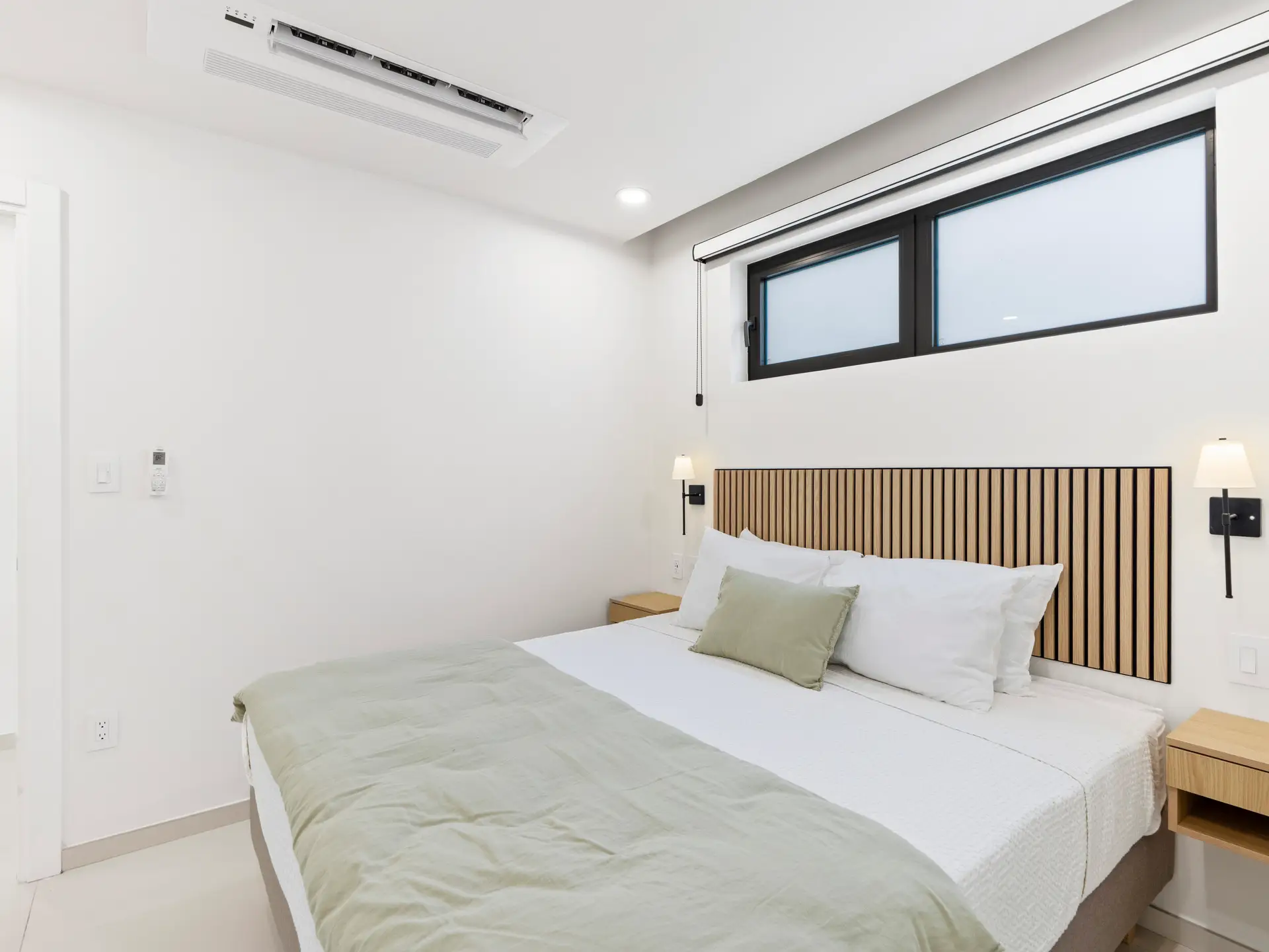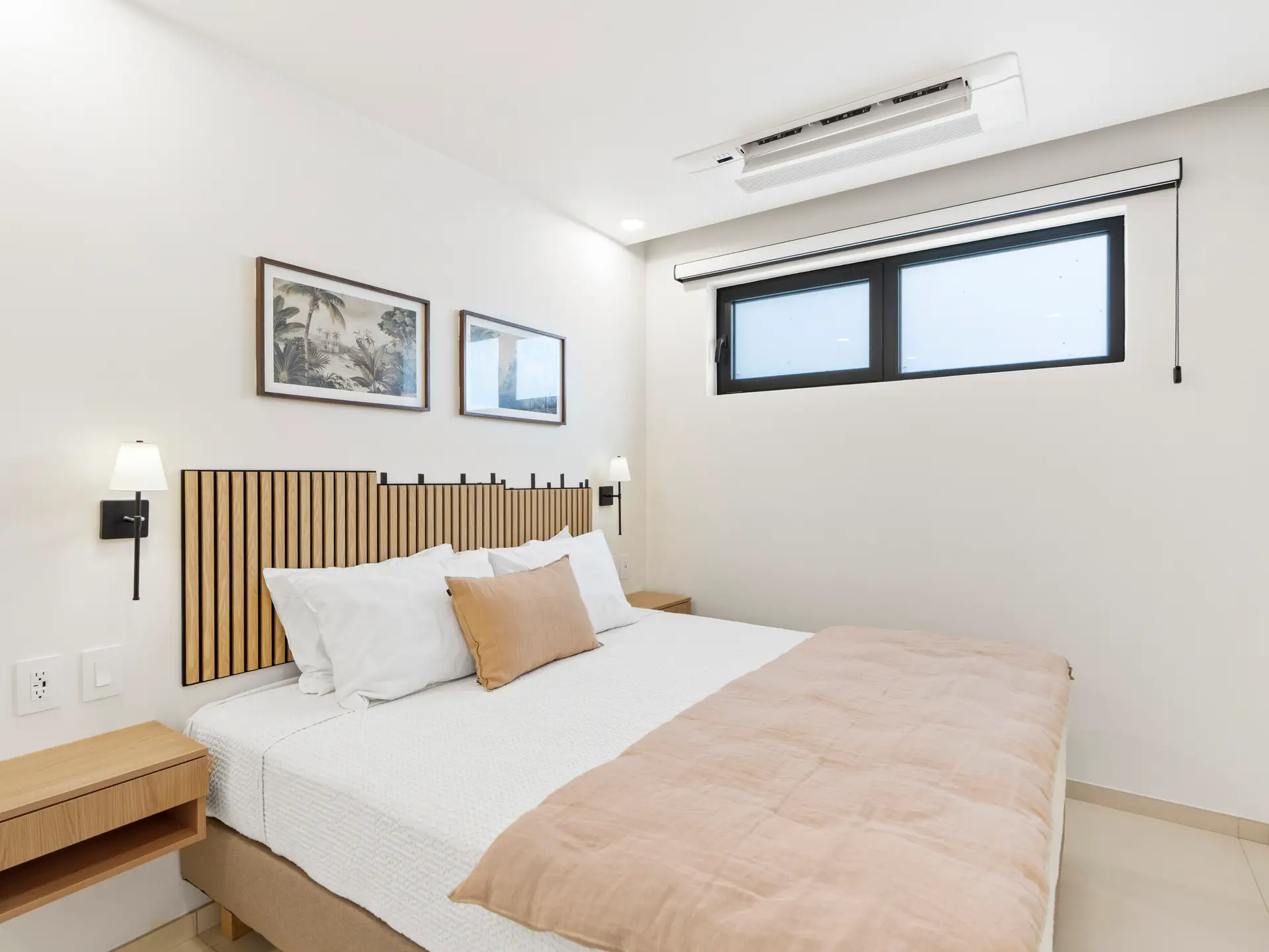 Les deux chambres sont soigneusement conçues pour offrir un maximum de confort et d’intimité. La chambre principale dispose de grandes fenêtres baignant l’espace de lumière naturelle et d’une salle de bain attenante avec une simple vasque et une luxueuse douche à effet pluie , créant ainsi un véritable havre de paix. La deuxième chambre, tout aussi chaleureuse, est idéale pour accueillir famille, amis ou invités. Elle est idéalement située à proximité de la deuxième salle de bain complète, élégamment aménagée et dotée d’équipements modernes.