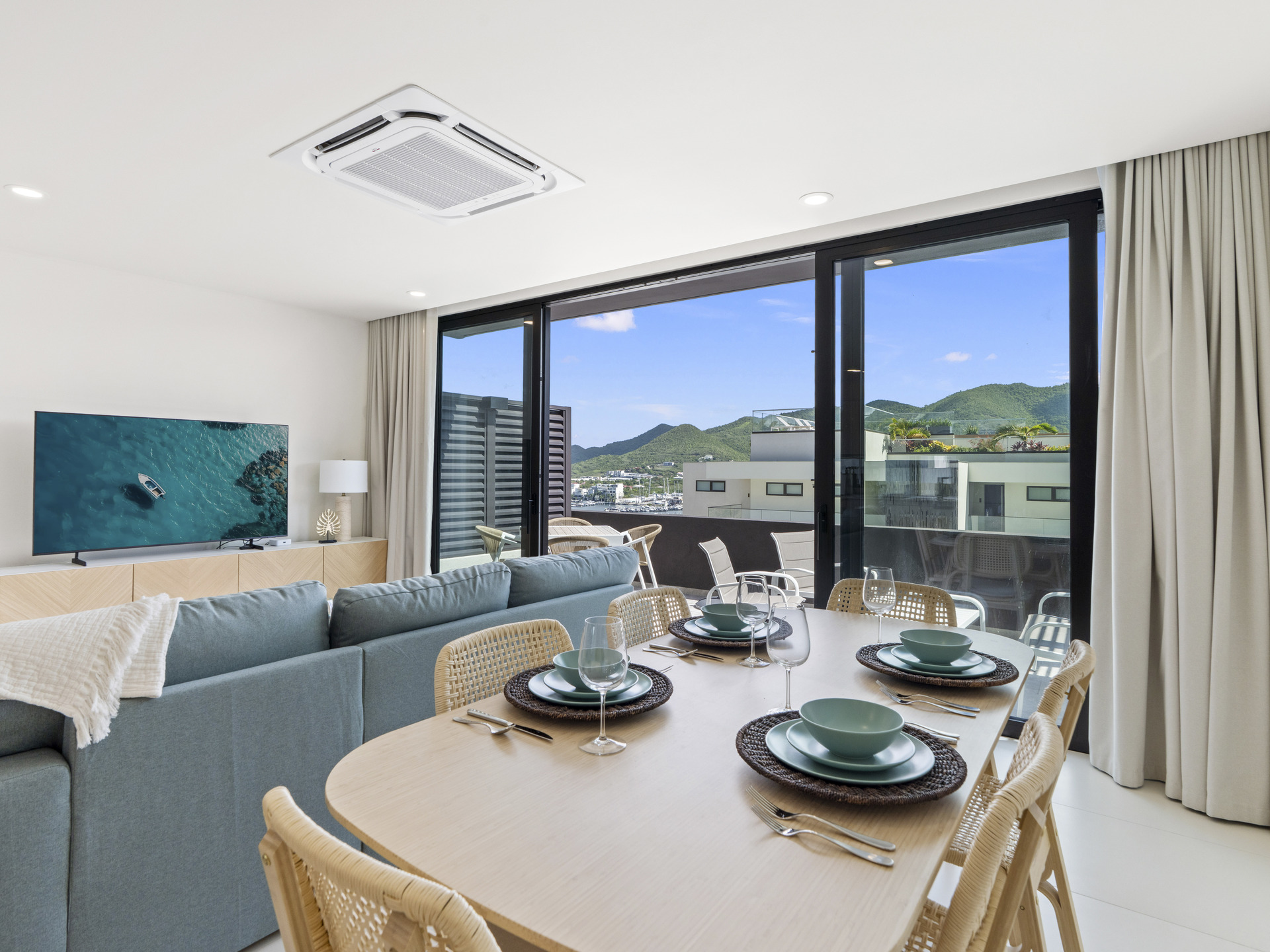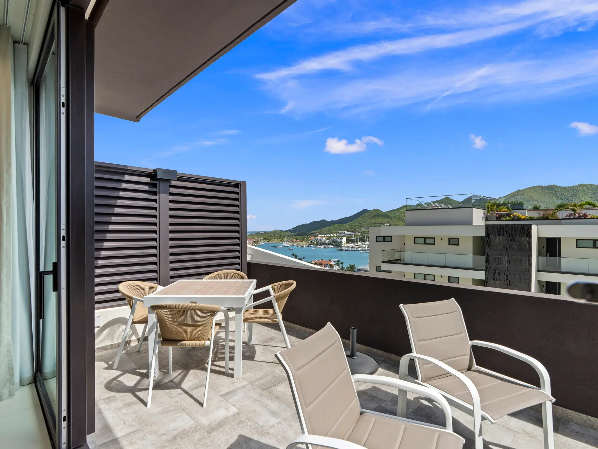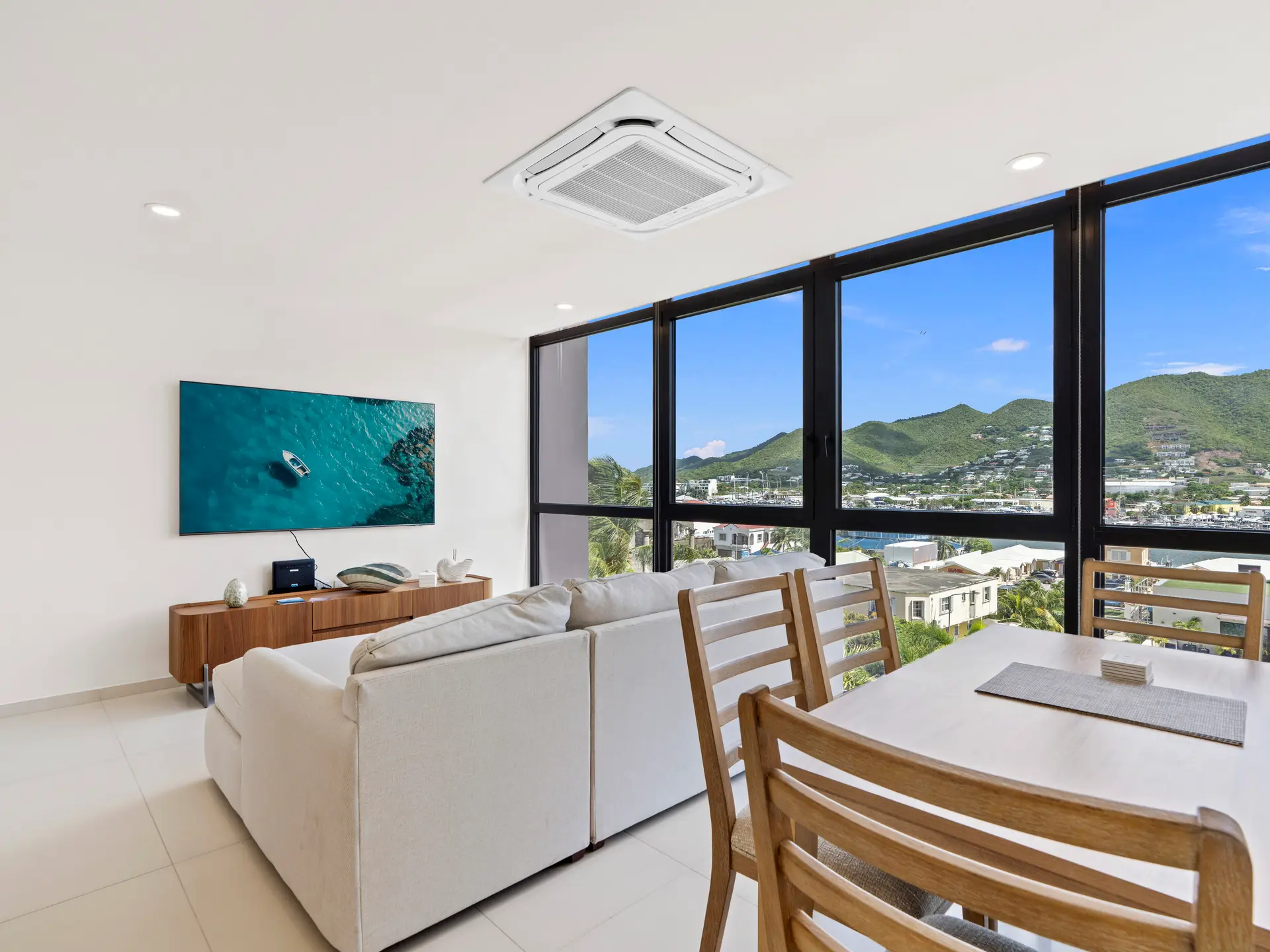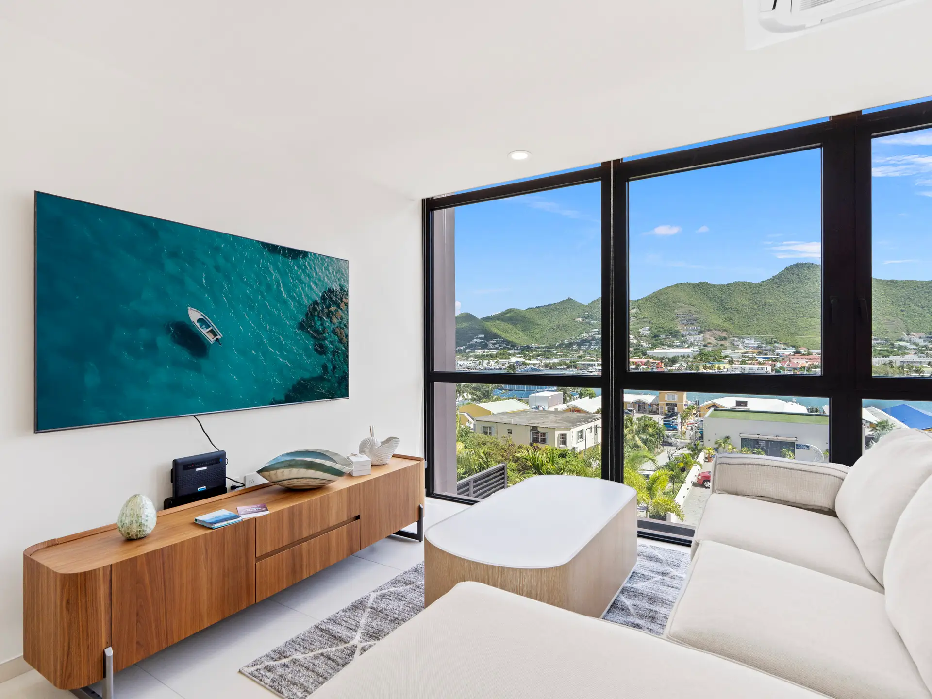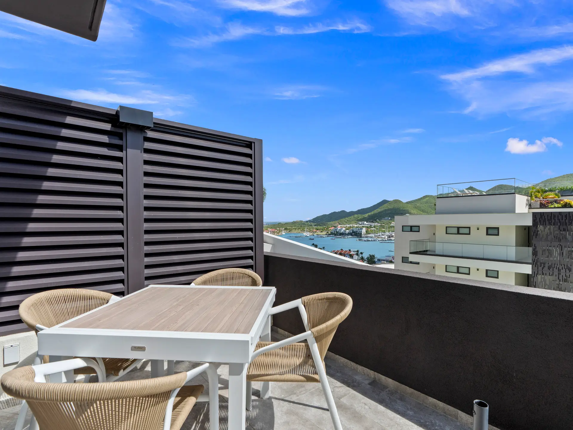 Découvrez cette superbe suite d’angle de deux chambres et deux salles de bain , parfaitement conçue pour allier confort moderne et élégance naturelle. Située au rez-de-chaussée du bâtiment 3, cette résidence offre un accès facile tout en offrant une vue panoramique imprenable sur l’ océan, Anguilla, le lagon et les montagnes verdoyantes environnantes .