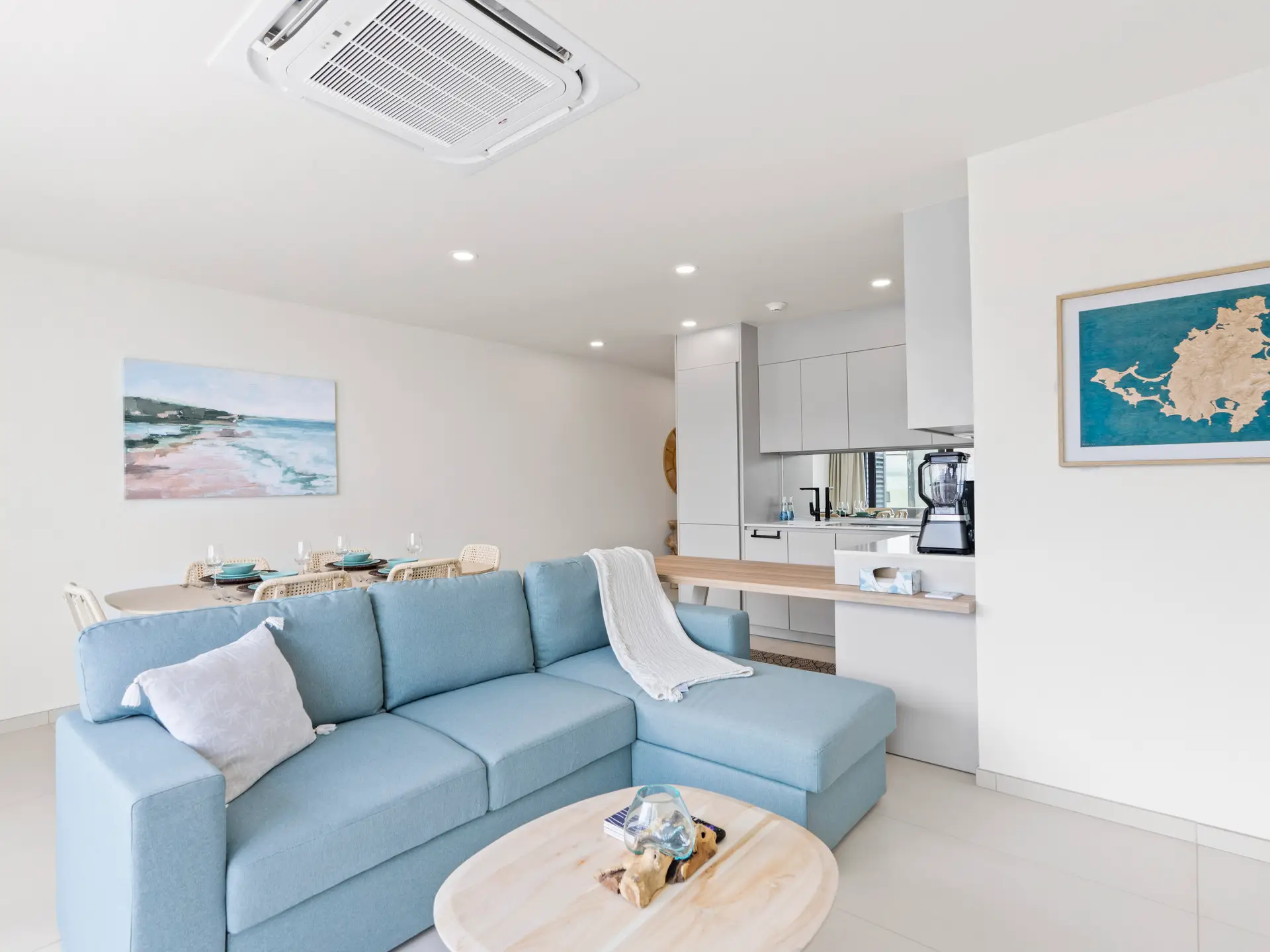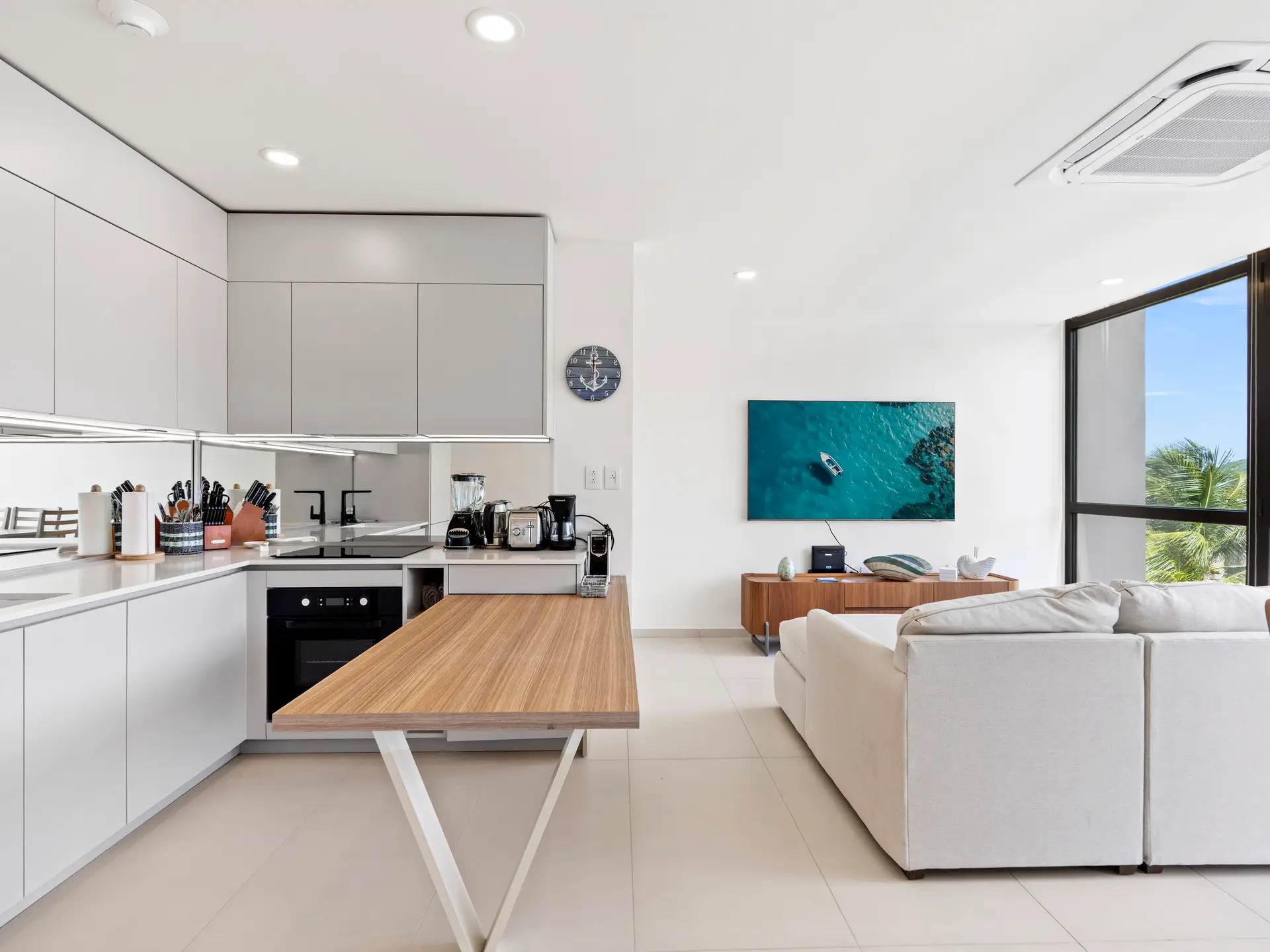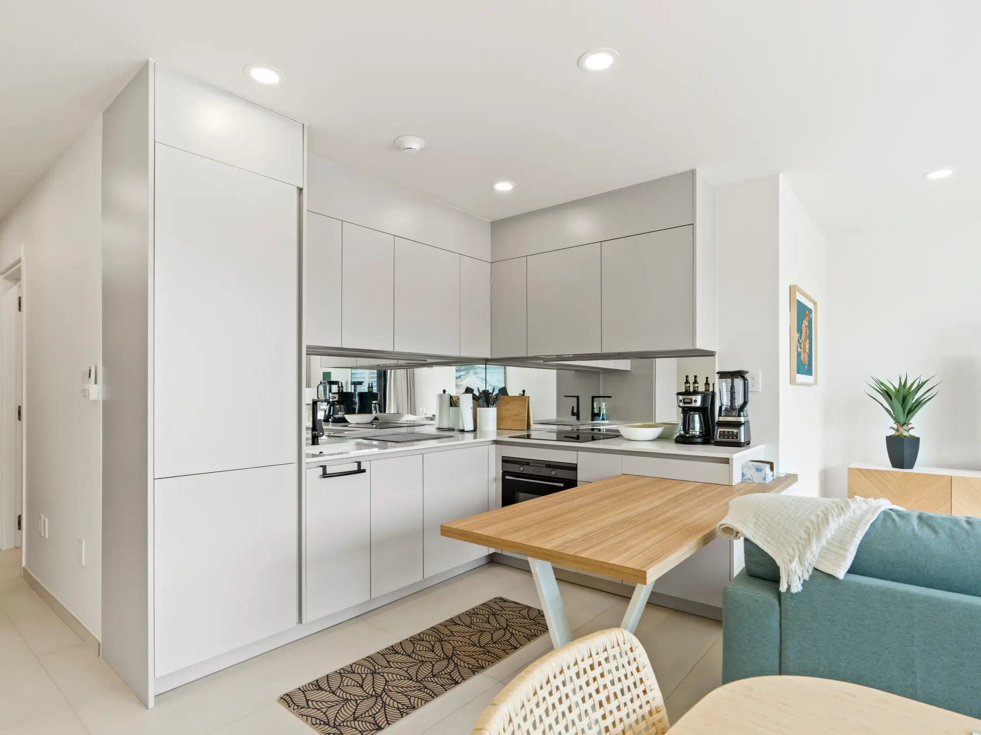 À l’intérieur, le salon et la salle à manger ouverts sont meublés avec goût, avec une décoration contemporaine et des touches élégantes, créant une atmosphère accueillante et relaxante. La cuisine moderne est entièrement équipée d’électroménagers haut de gamme, d’armoires élégantes et d’un grand plan de travail, idéal pour les repas décontractés comme pour les repas gastronomiques.