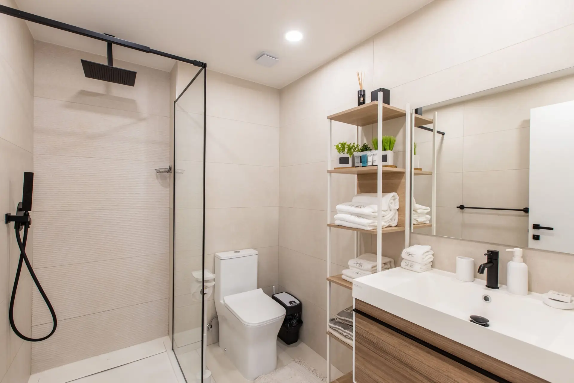 Air Conditionné - Cuisine Equipée - Four - Hotte Aspirante - Lave Linge / Seche Linge Combo - Lave Vaisselle - Plaques de Cuisson - Refrigérateur - Salle de Bain Equipée