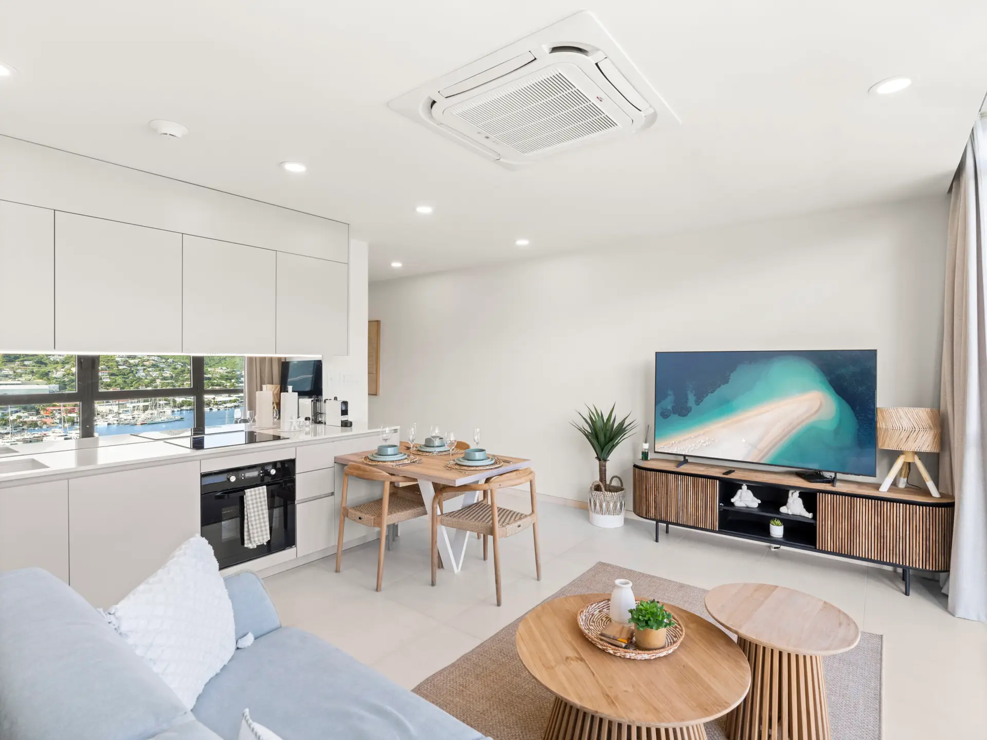 Air Conditionné - Cuisine Equipée - Four - Hotte Aspirante - Lave Linge / Seche Linge Combo - Lave Vaisselle - Plaques de Cuisson - Refrigérateur - Salle de Bain Equipée