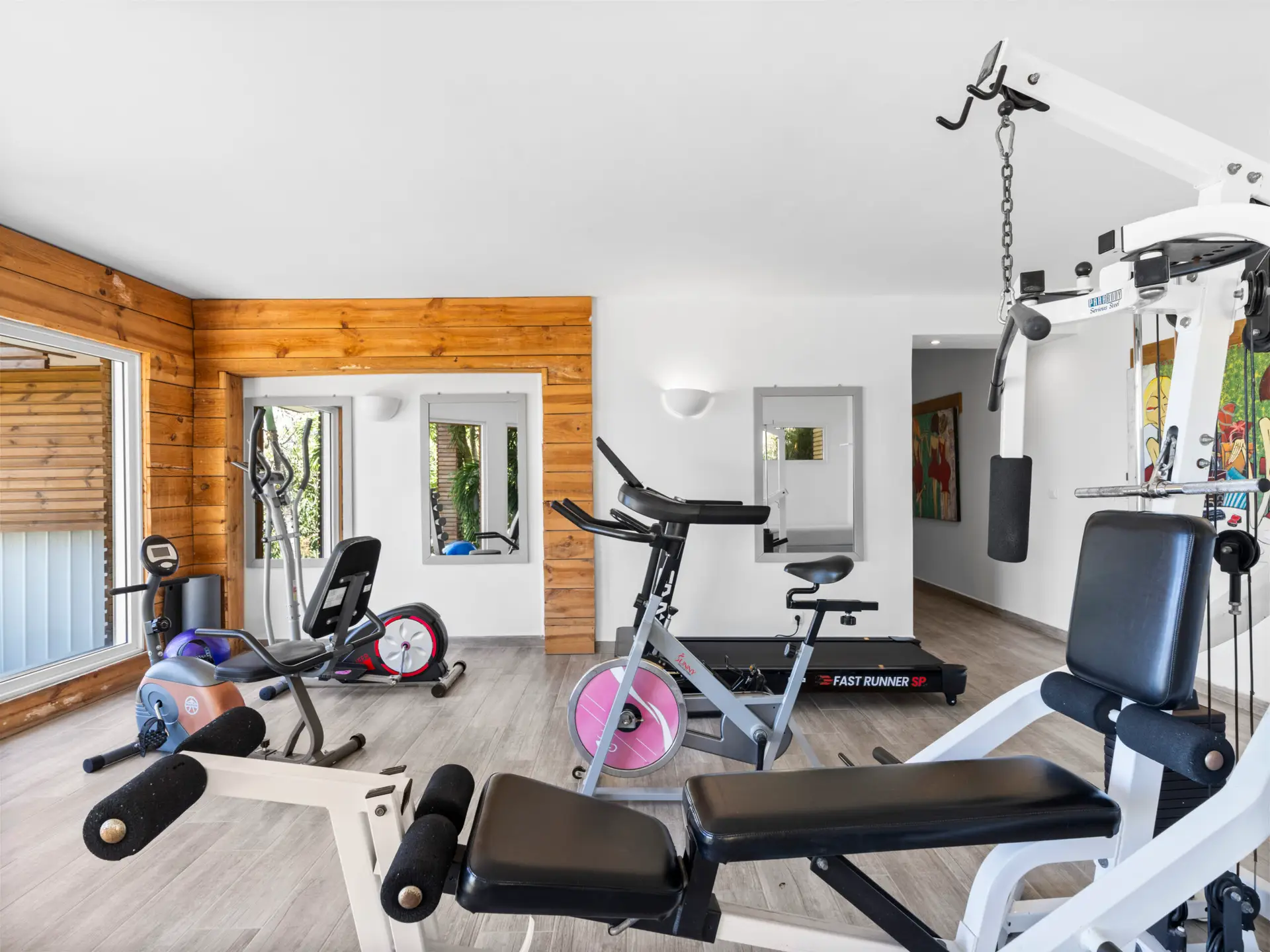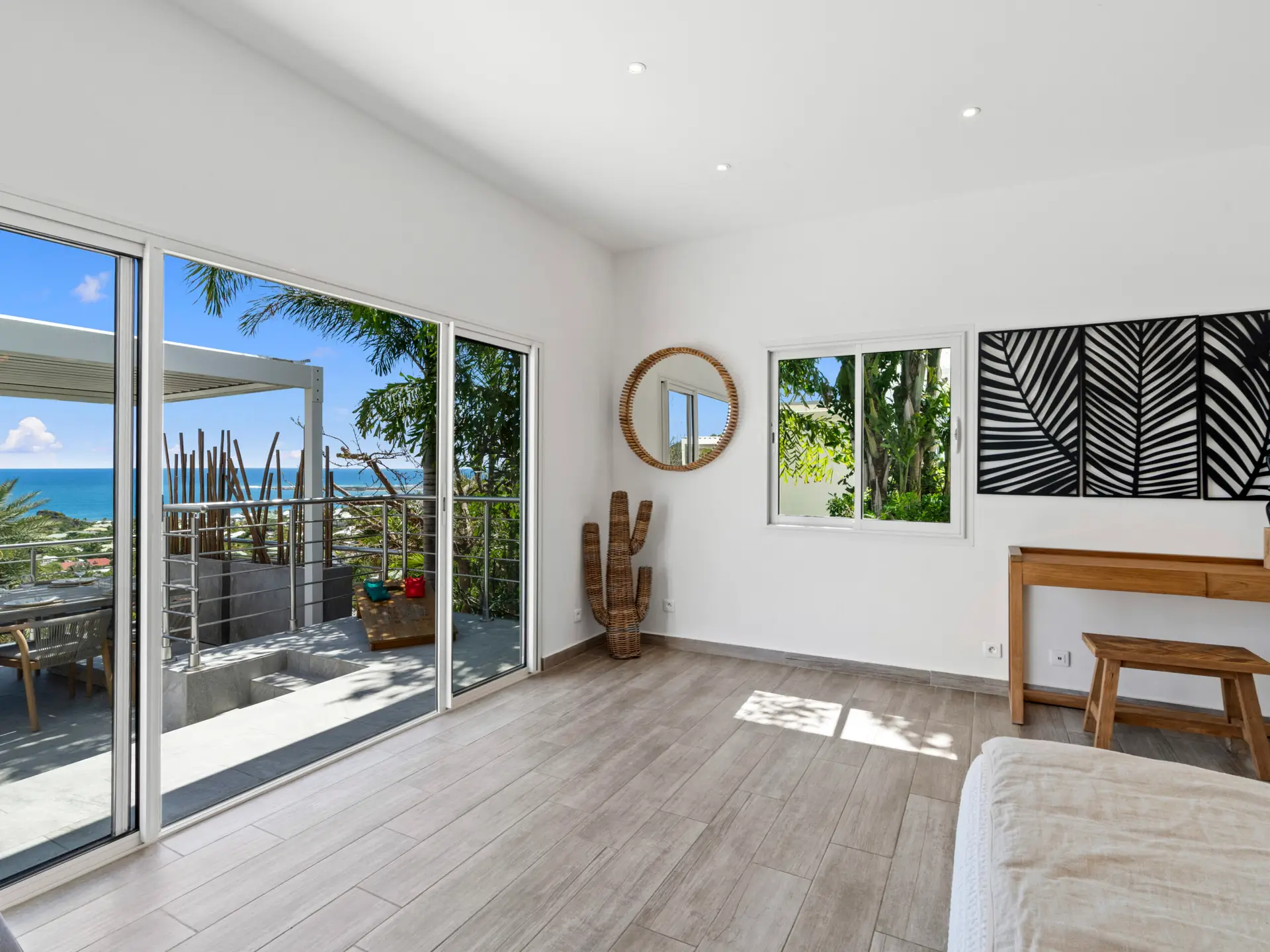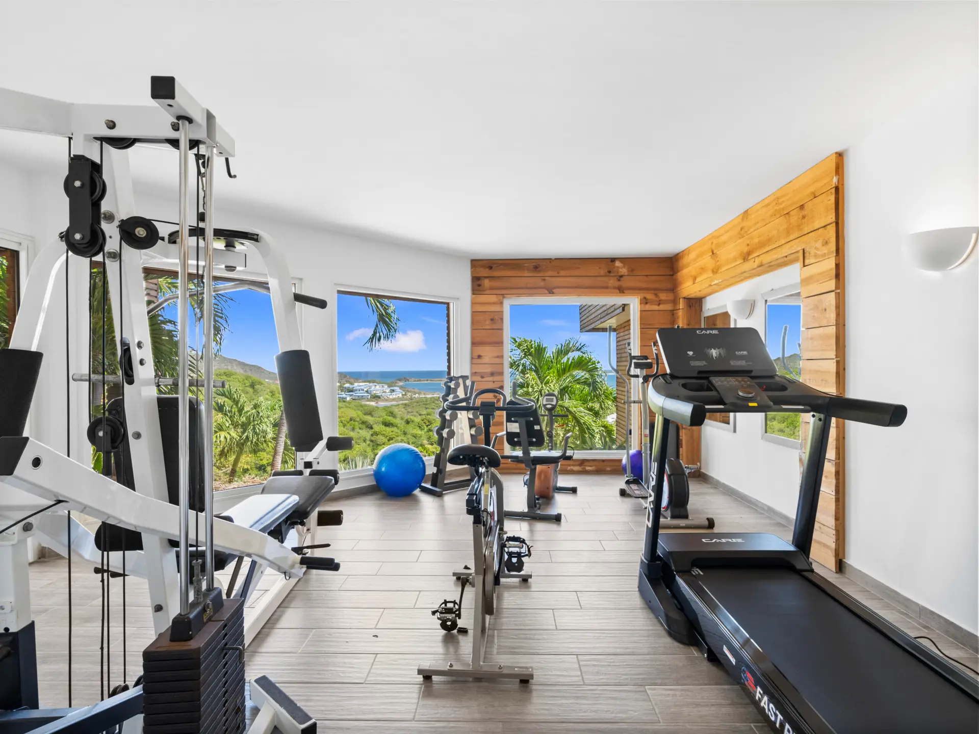 La villa dispose également d’une salle de sport privée entièrement équipée, idéale pour maintenir votre programme sportif pendant votre séjour. Détendez-vous ensuite sur la spectaculaire terrasse moderne, agrémentée de pergolas et d’un barbecue, et admirez la vue imprenable sur la mer des Caraïbes.