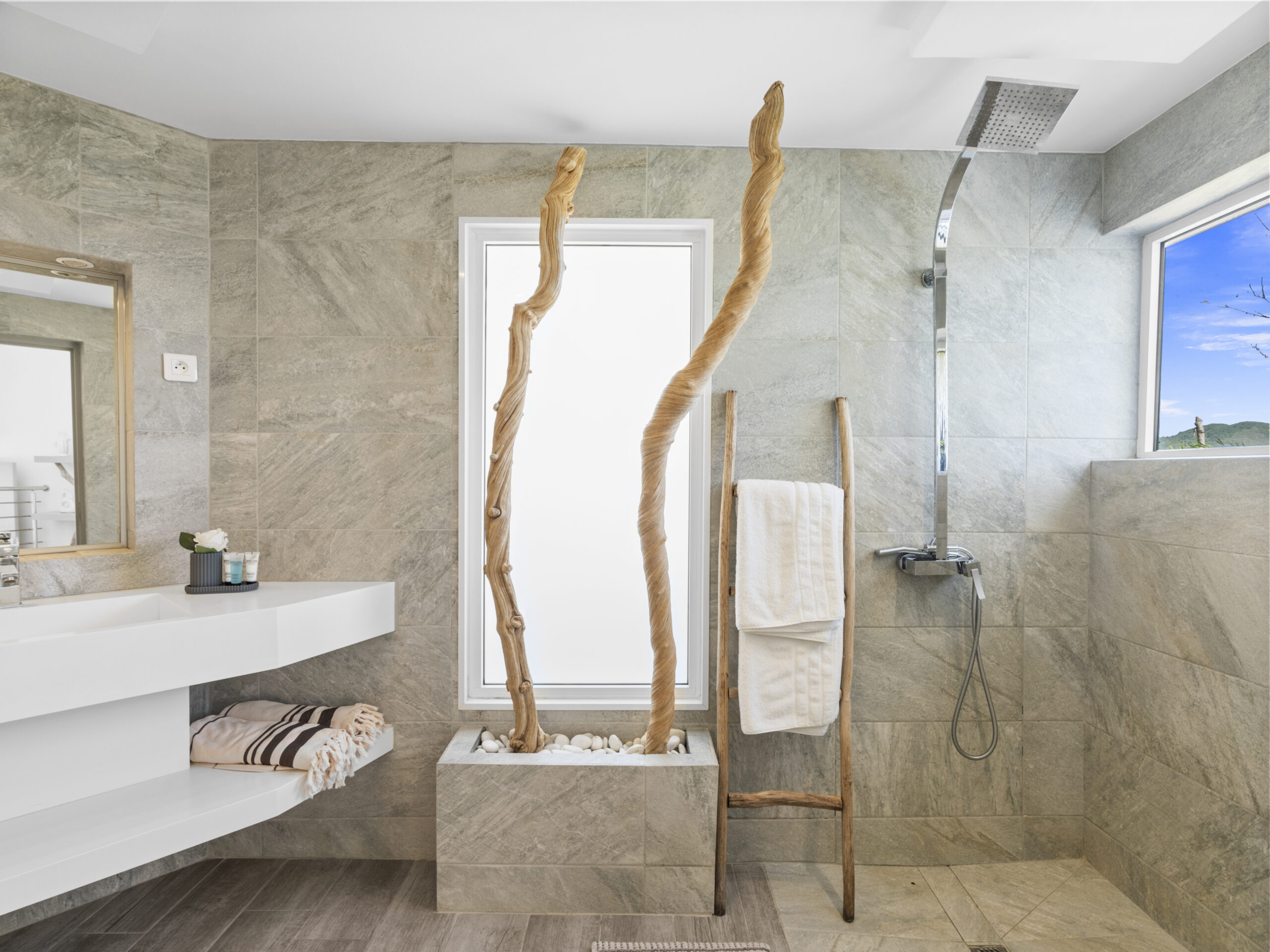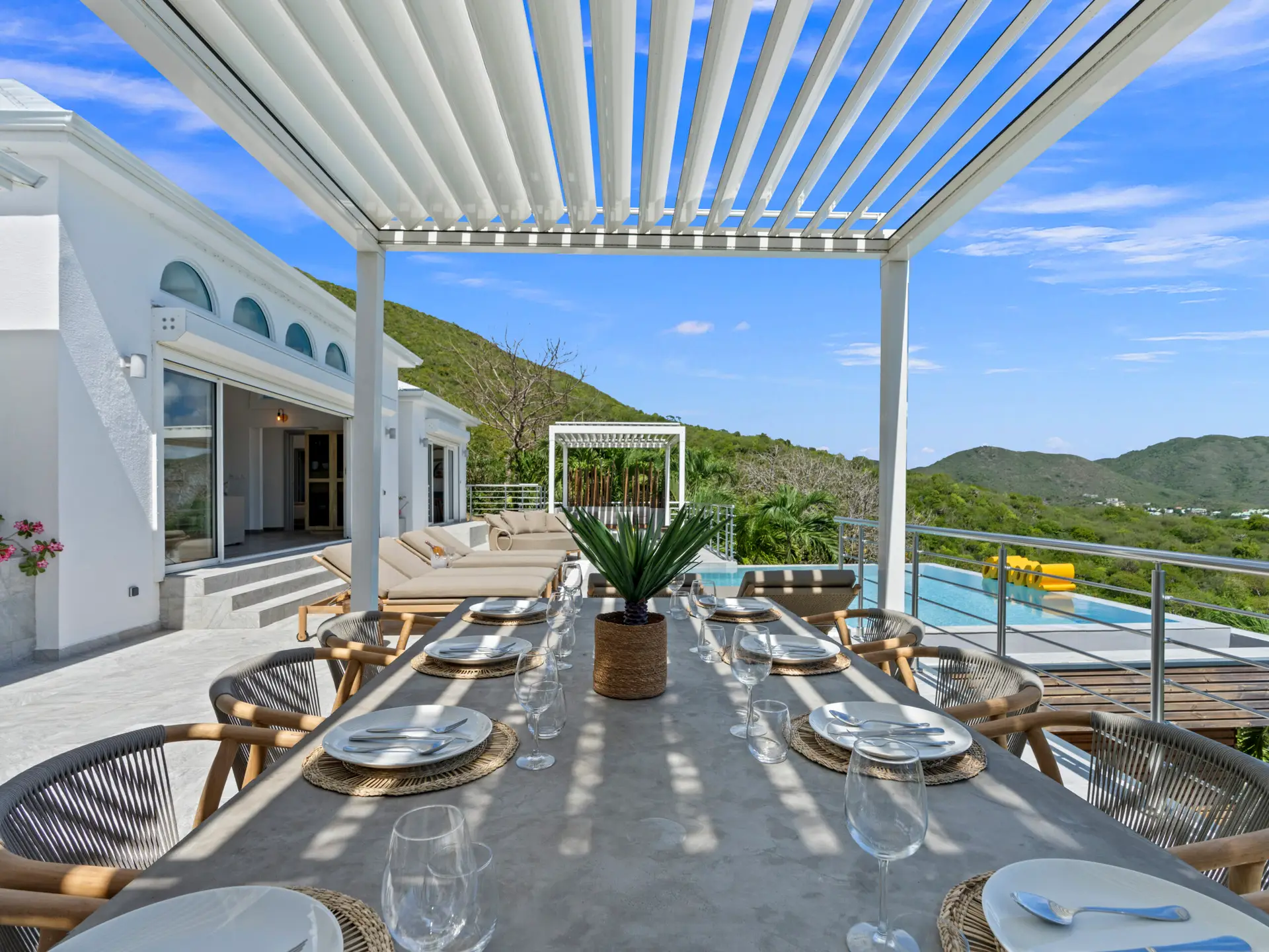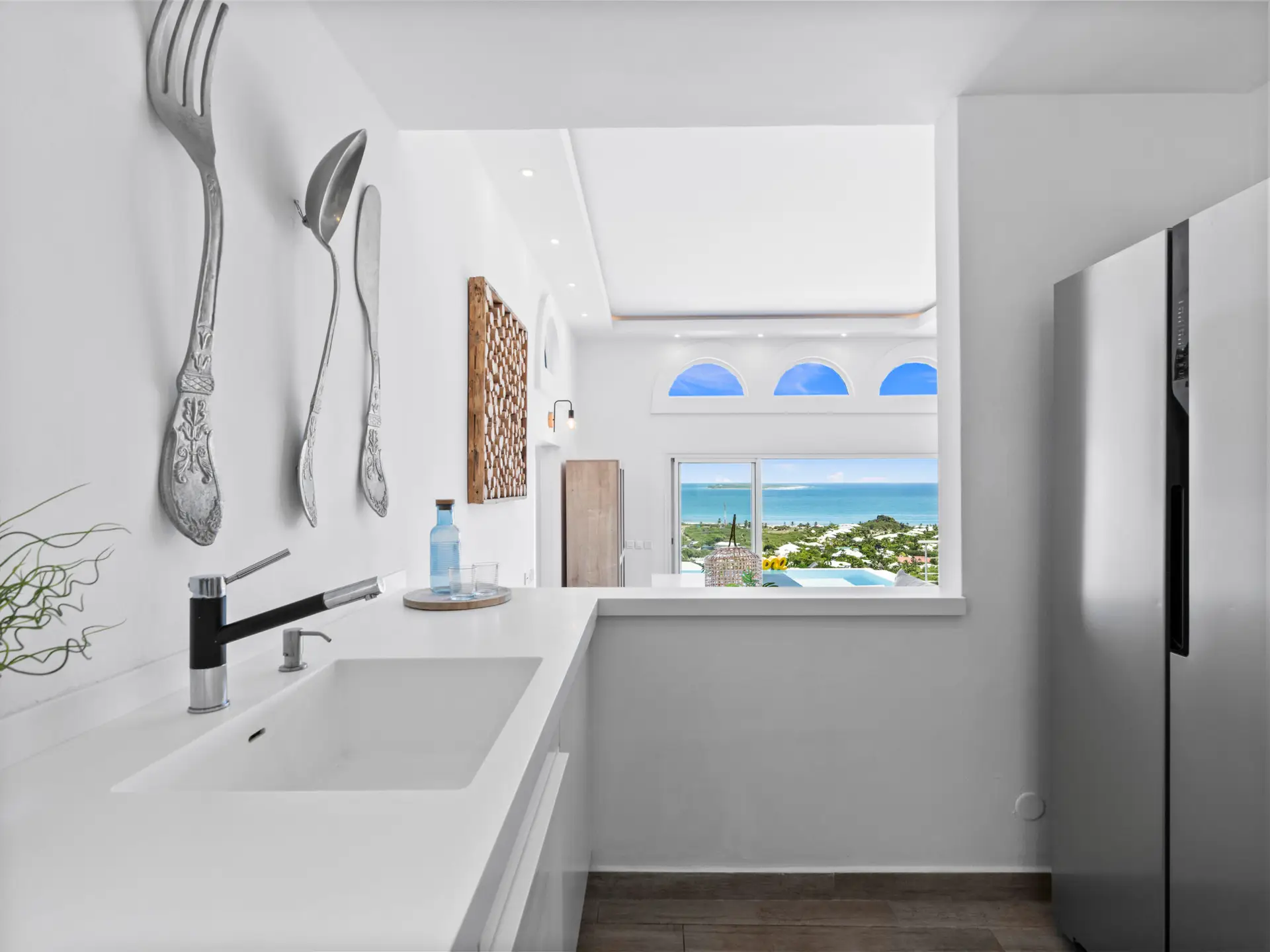 La villa dispose également d’une salle de sport privée entièrement équipée, idéale pour maintenir votre programme sportif pendant votre séjour. Détendez-vous ensuite sur la spectaculaire terrasse moderne, agrémentée de pergolas et d’un barbecue, et admirez la vue imprenable sur la mer des Caraïbes.