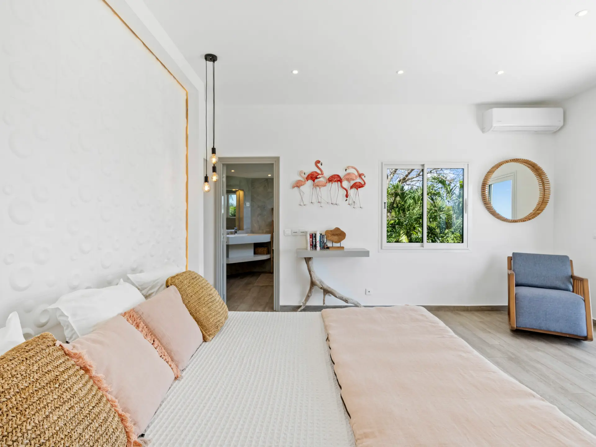 Entrez dans cette villa au design soigné, où chaque détail a été pensé pour votre confort. Chacune des 4 chambres spacieuses dispose d’une salle de bain attenante, offrant ainsi une intimité et un confort absolus à chacun. Dormez sur vos deux oreilles sur des lits king-size et réveillez-vous prêt pour une journée d’aventure ou de détente.