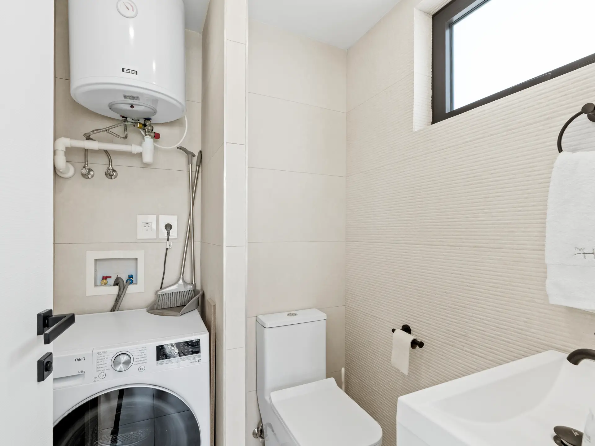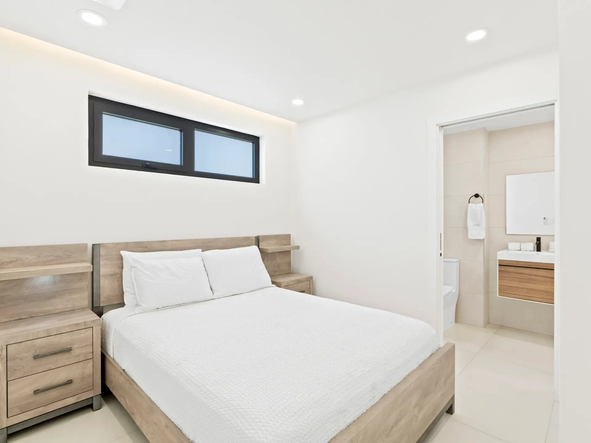 The apartment features two cozy bedrooms connected by a convenient Jack and Jill bathroom, making it perfect for couples, friends, or families traveling together.