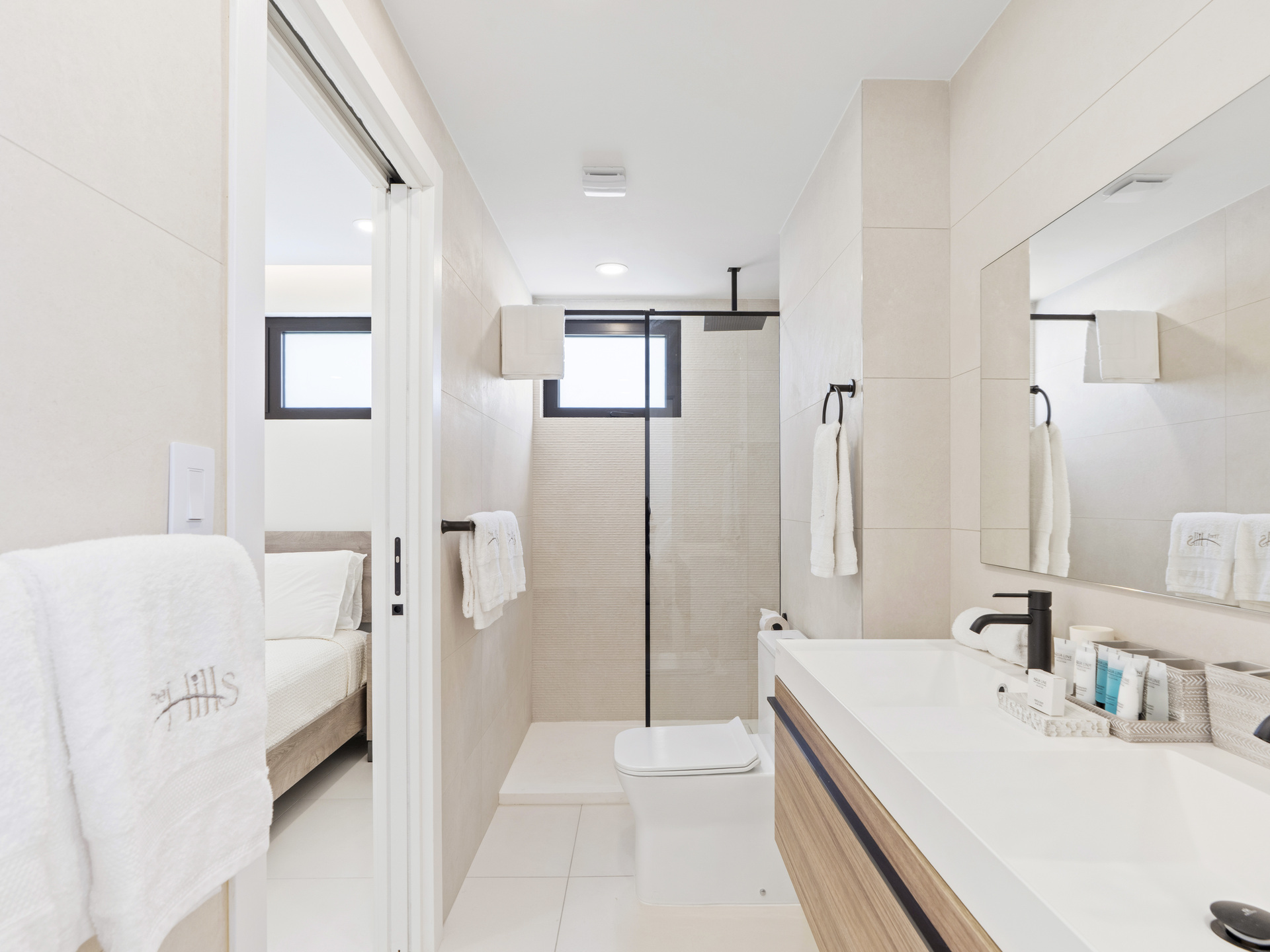 We are happy to present this comfortable two-bedroom apartment, located on the first floor of The Hills Residence in Simpson Bay. With 75m² of living space and a glass wall offering nice views of the lagoon, this apartment is a great choice for your stay in Sint Maarten.