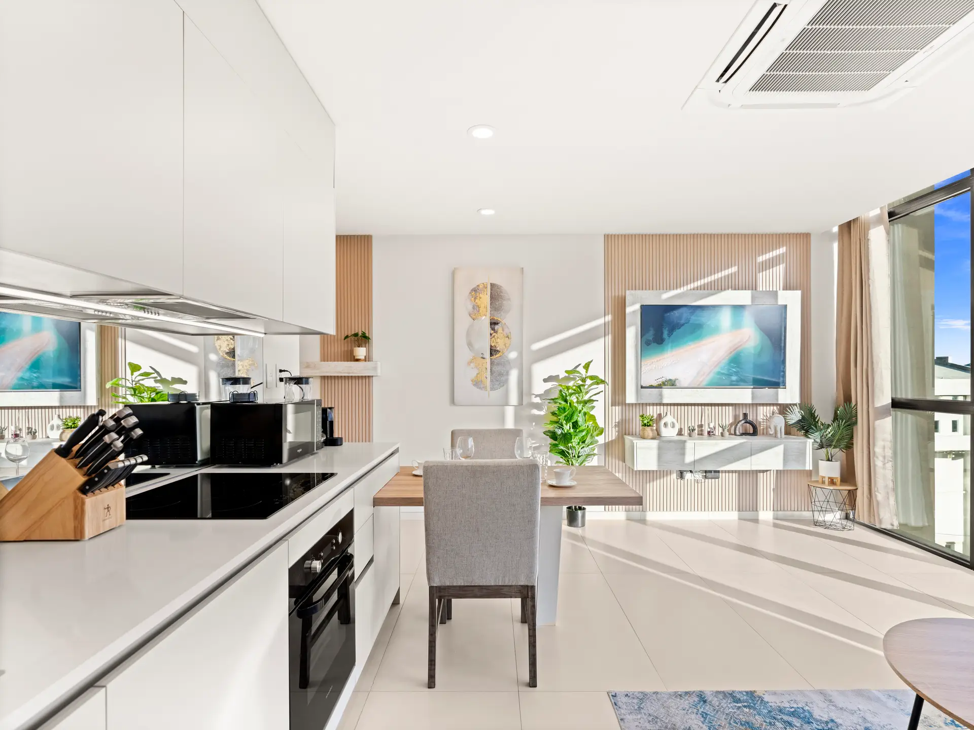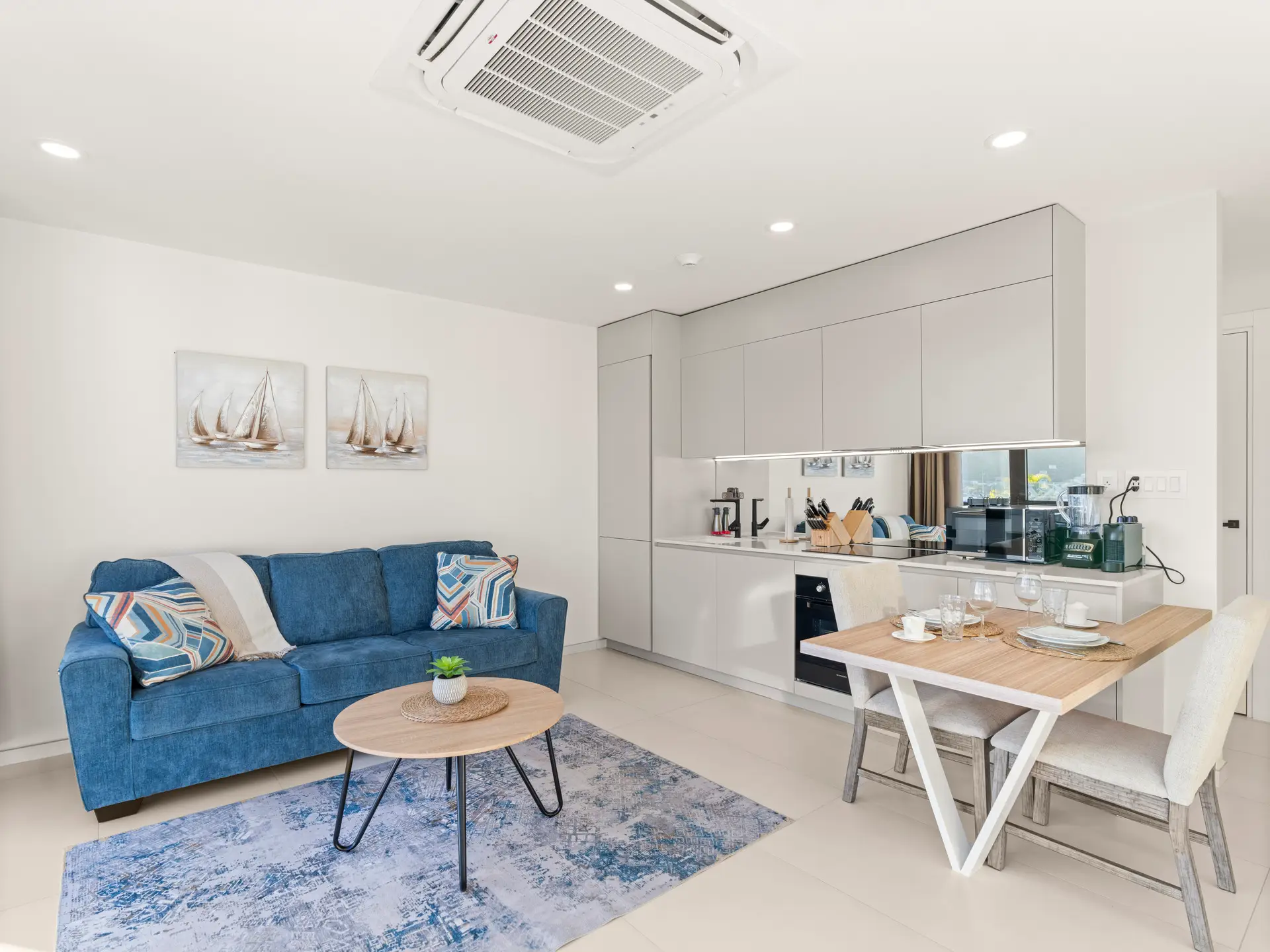 Step into a beautifully designed living area that combines modern elegance with cozy warmth. Every corner of B213 is carefully curated to create an unforgettable stay. Located on the first floor, this apartment provides easy accessibility while offering the privacy you need. With free private parking and all the comforts of home, B213 ensures a stress-free experience. Whether you’re unwinding after a full day of exploring or enjoying a quiet evening in, this apartment sets the perfect tone for your island escape.