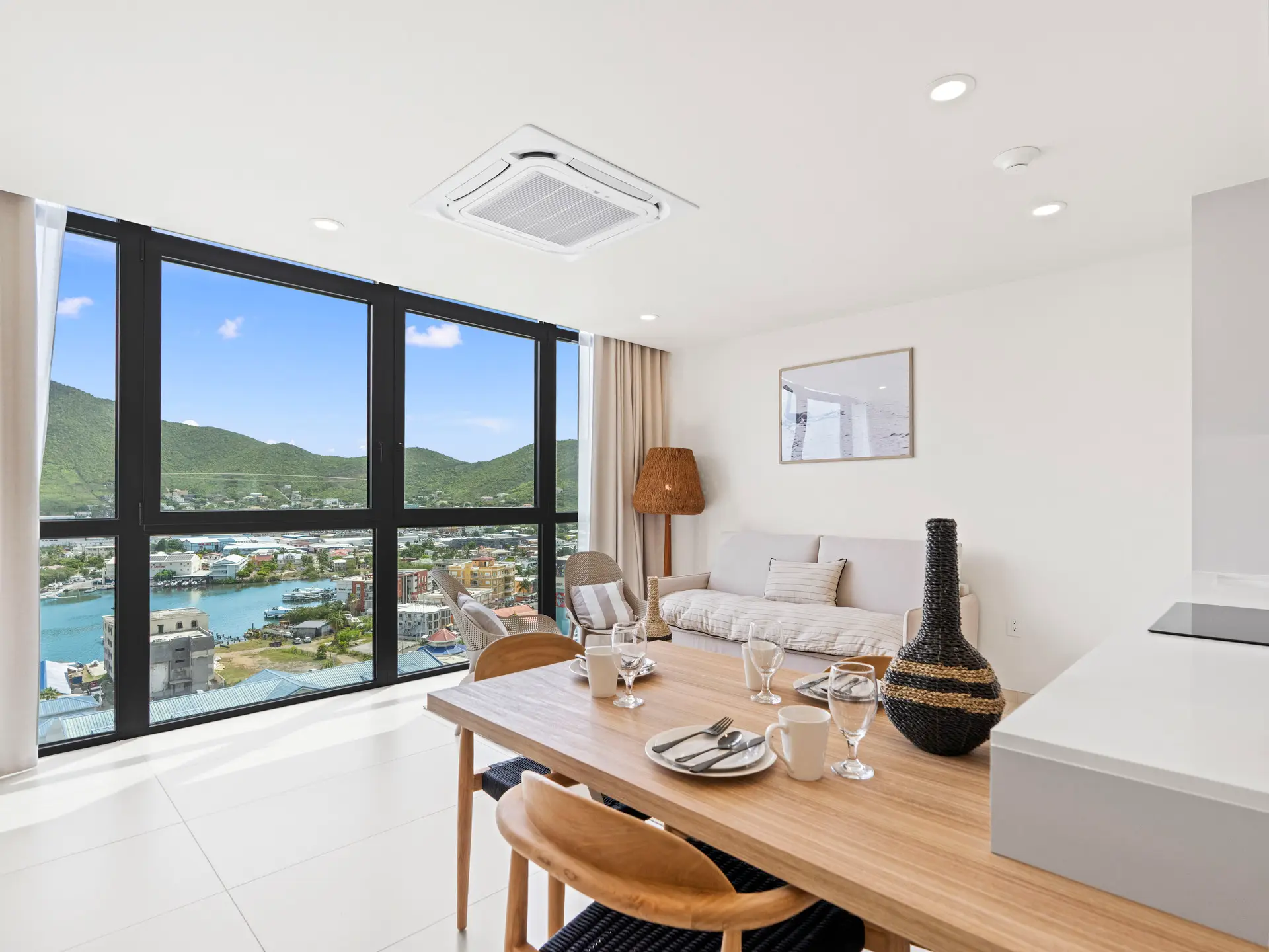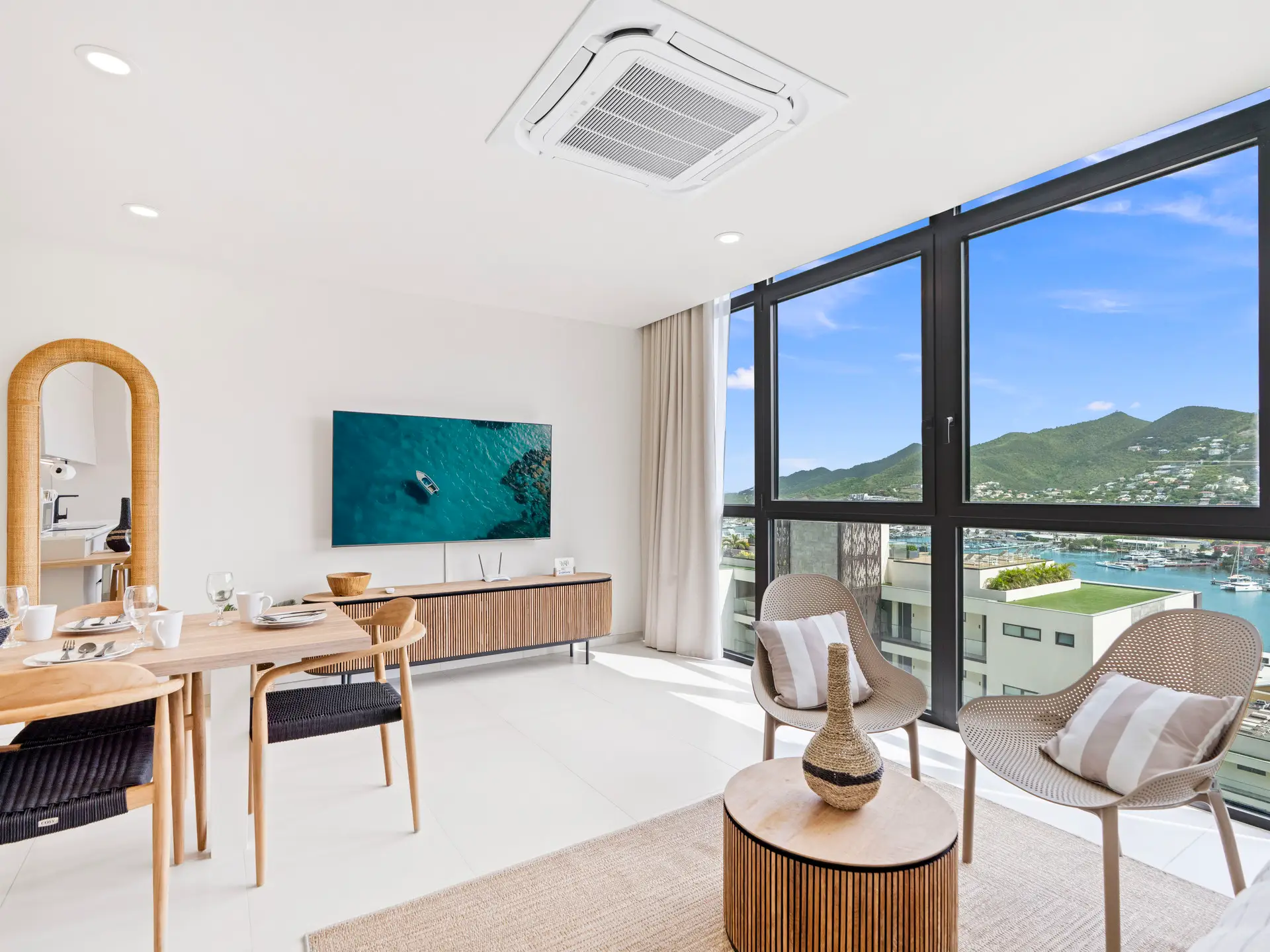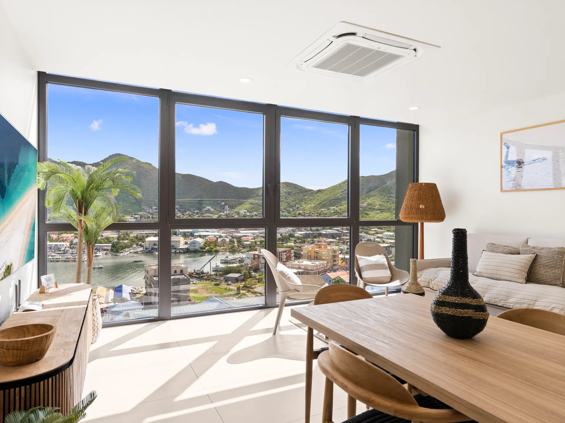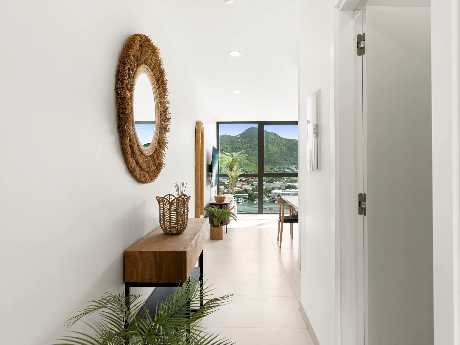 Experience the perfect blend of comfort, style, and stunning scenery in this modern 1-bedroom, 1-bathroom apartment, located on the second floor of Building C. Ideal for couples or solo travelers, this bright and airy space offers breathtaking views of the Simpson Bay Lagoon through large windows that flood the apartment with natural light.