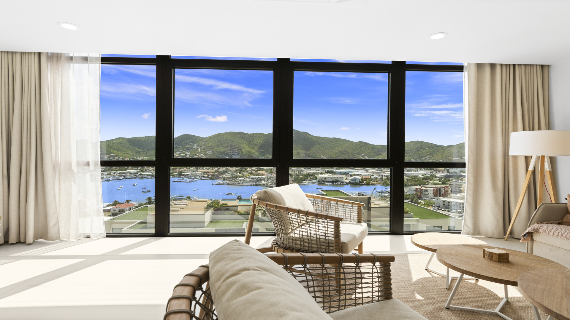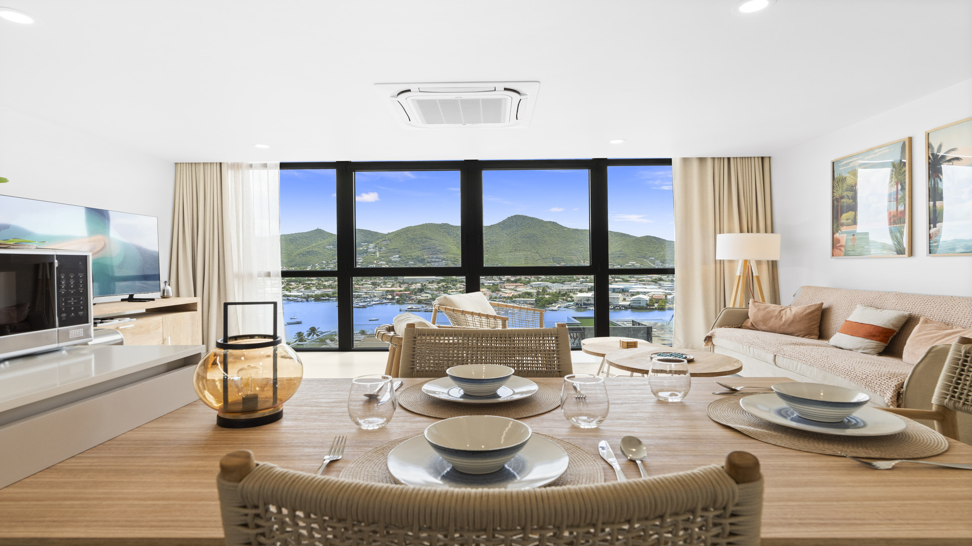 Step into a beautifully designed space that blends contemporary style with island charm. The bright and airy living area is perfect for relaxing or entertaining, while the private balcony offers breathtaking views of the Simpson Bay Lagoon. With private parking, 24/7 security, and an elevator, The Hills Residence ensures a seamless and stress-free stay.