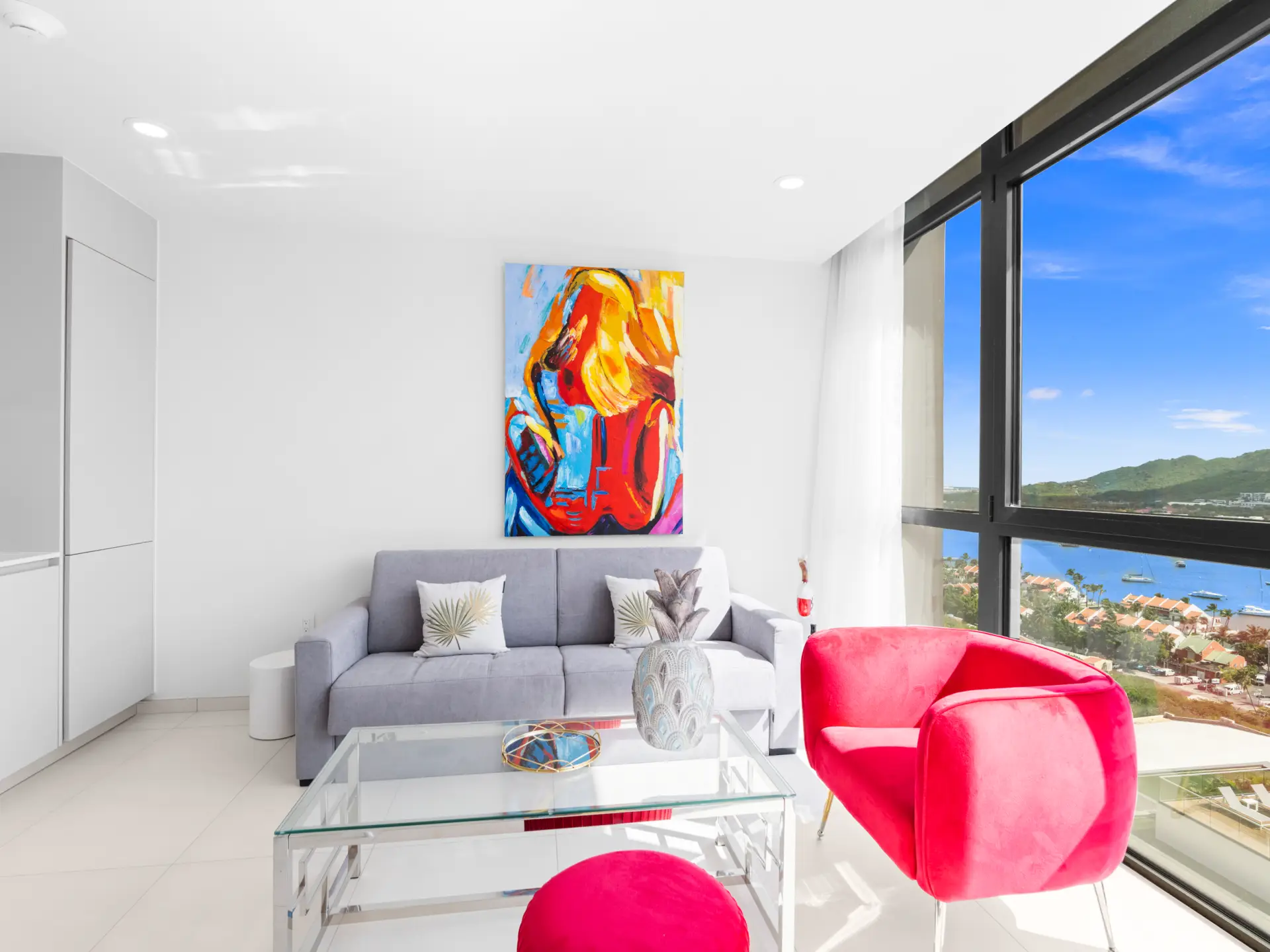 Perched on the top floor of Building 3, Apartment C-355 offers unparalleled luxury with sweeping views of the Simpson Bay Lagoon. This beautifully designed one-bedroom apartment combines modern sophistication with ultimate comfort, making it the perfect retreat for relaxation and rejuvenation.
