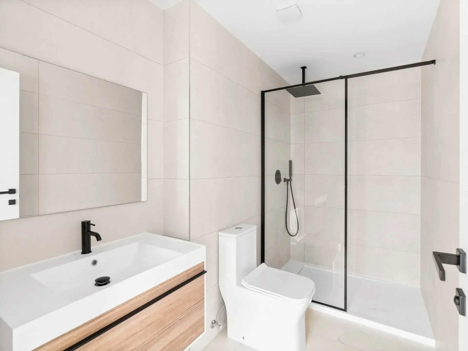 Contemporary bathroom with modern finishes, offering both style and functionality.