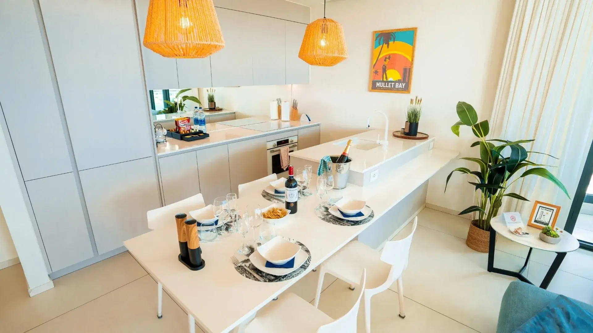 The open-plan kitchen makes both cooking and entertaining a delight. Fully equipped with top-tier appliances including a Nespresso coffee machine, induction stove, electric oven, dishwasher, and multiple kitchen accessories, it has everything you need to create and enjoy incredible meals.