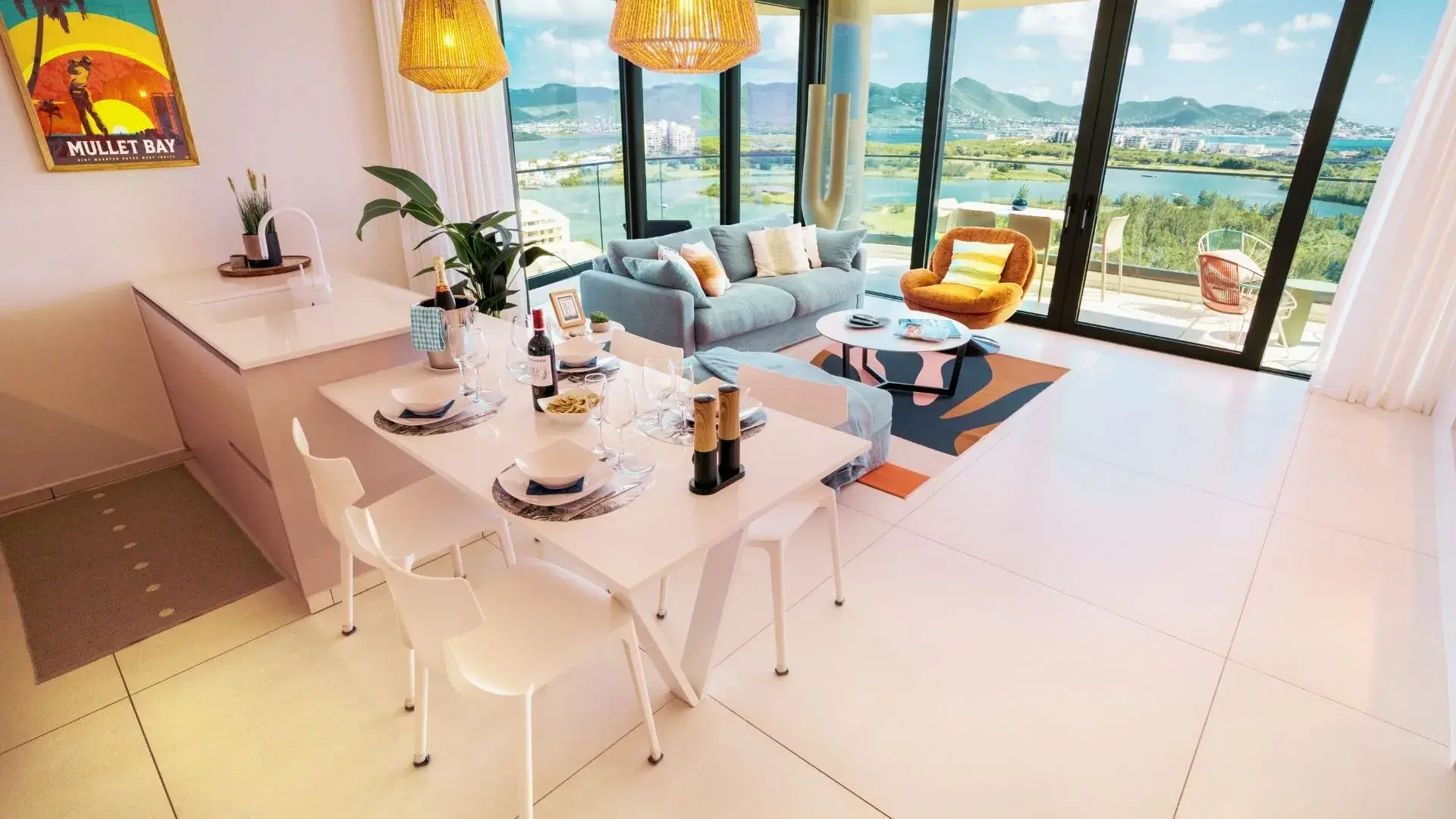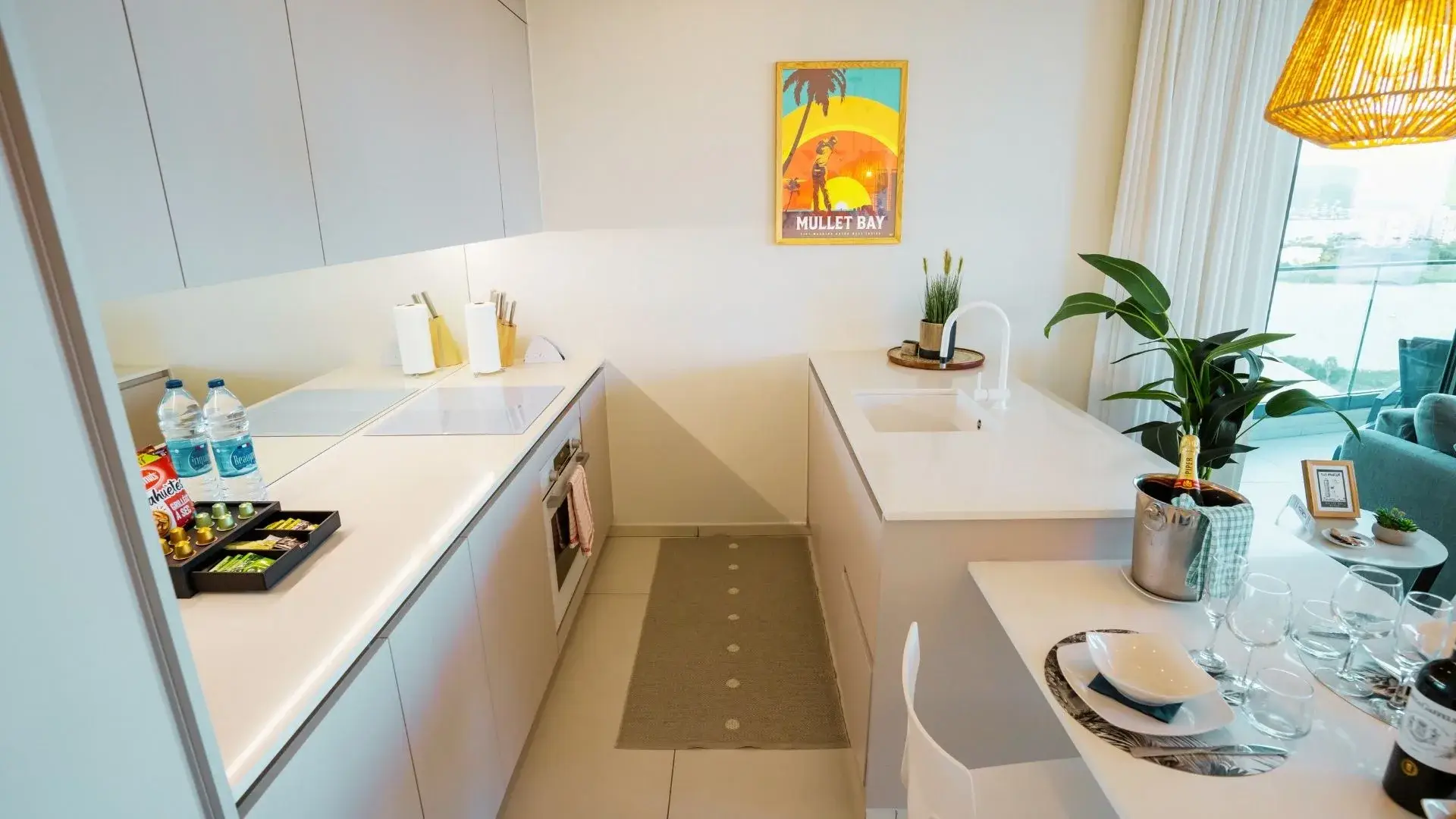 Every element of this condo has been meticulously designed to surpass your expectations. Floor-to-ceiling windows showcase breathtaking panoramic views, visible from the living area and both bedrooms. Furnished top-to-bottom with high-quality pieces and featuring unique local artwork, including the incredible “Neon Octopus” by Sint Maarten’s own Tess, this home is a true modern tropical gem.