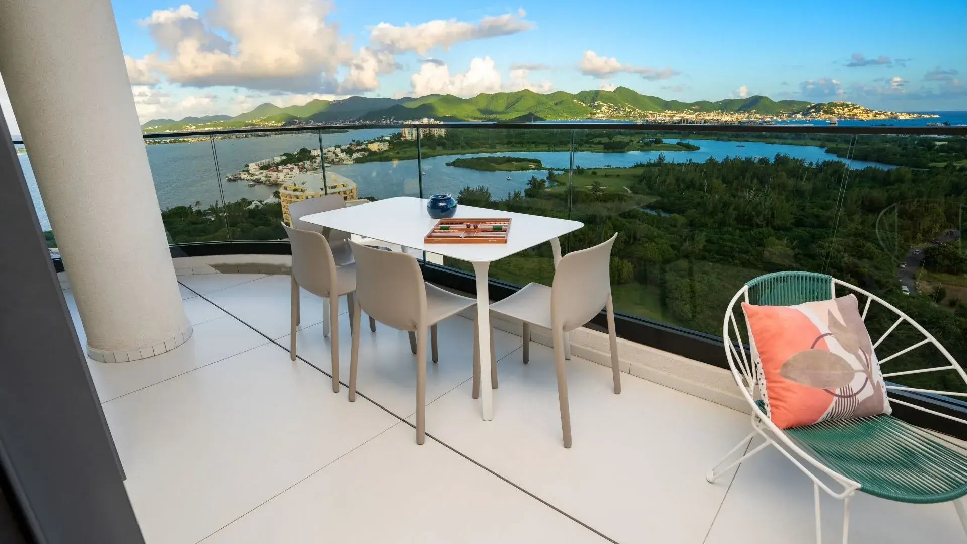 The spacious balcony invites you to unwind while soaking in the stunning surroundings, whether enjoying your morning coffee or dining under the stars.